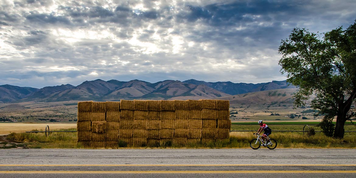 30-PLUS MILES TO PRESTON — The ride north through peaceful Cache Valley is flat to moderate. Typically crisp and cool in the morning, but a great way to warm up for the first big climb. Don’t go out too fast and burn all your “fun tokens” — you’ll need the extra energy later in the day. Our race vs. cyclosportive ride cyclists do not share the same road until they are just northeast of Preston, Idaho.